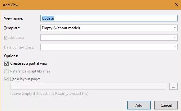 return PartialView("Update");