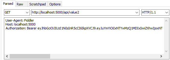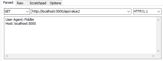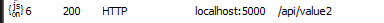 再次调用我们的模拟数据接口,但是这次我们加了一个HEADER:http://localhost:5000/api/value2