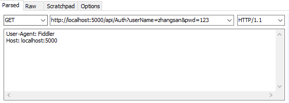 调用模拟登陆授权接口:http://localhost:5000/api/Auth?userName=zhangsan&pwd=123