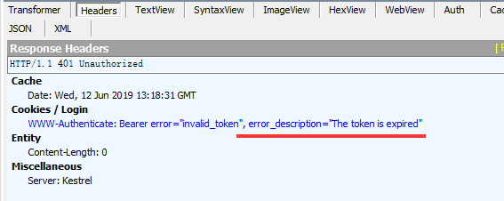 这里有标注,错误描述 token过期,说明我们设置的token过期时间生效了