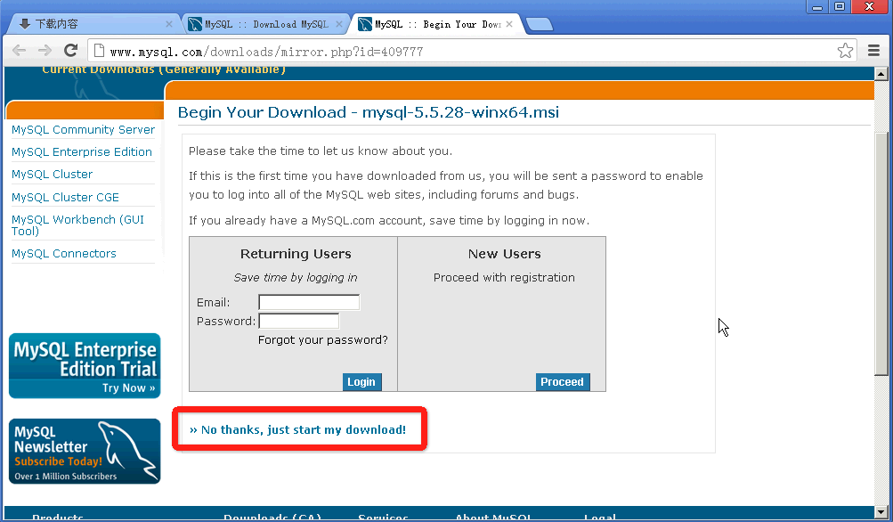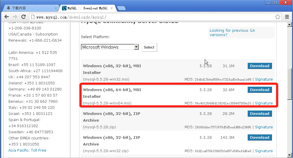 a)访问http://www.mysql.com/downloads/mysql/,选择64位版本的mysql5.5