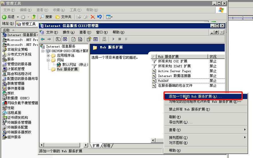 在右侧的空白区域右键点击“添加一个新的web服务扩展”