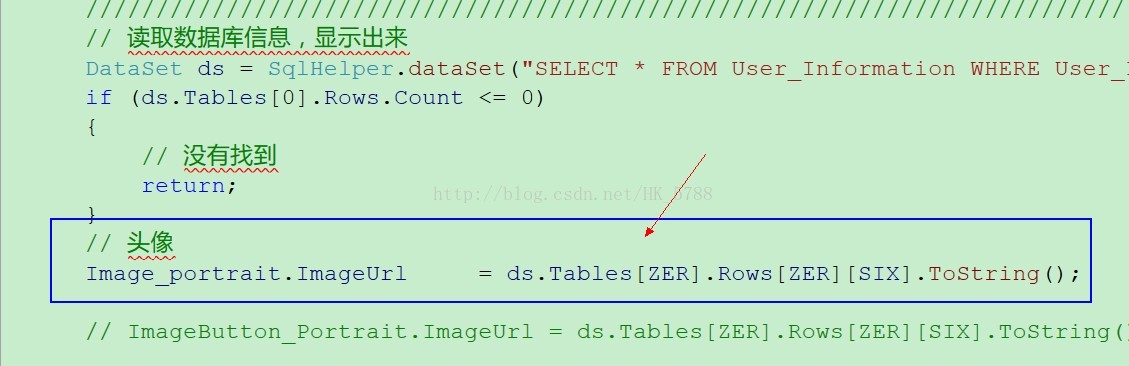 // 头像 Image_portrait.ImageUrl = ds.Tables[ZER].Rows[ZER][SIX].ToString();