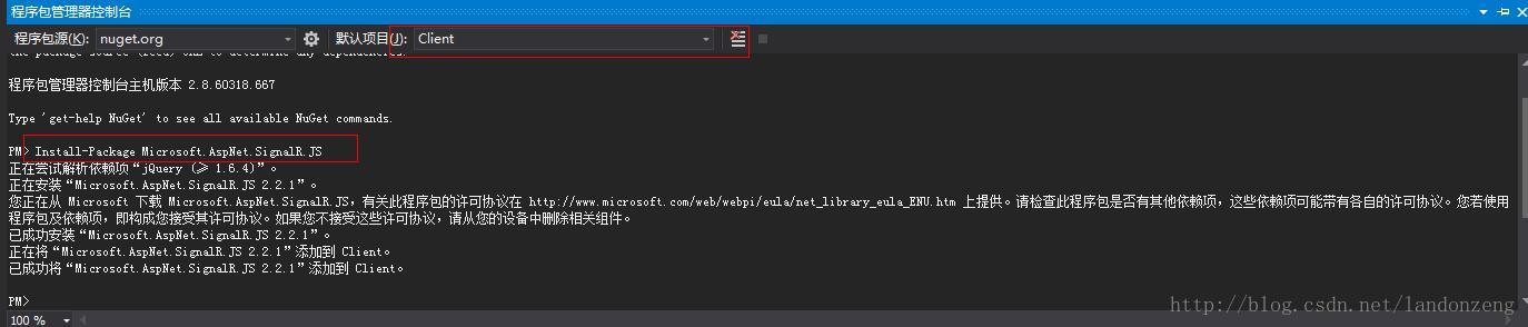 4、在vs中打卡程序包管理器控制台,输入以下代码
