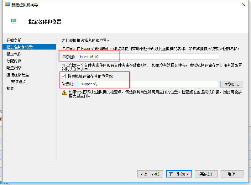 2、修改虚拟机的名字为Ubuntu16.10,然后修改一下虚拟机存储的位置,建议放到空间比较大的一个盘符上