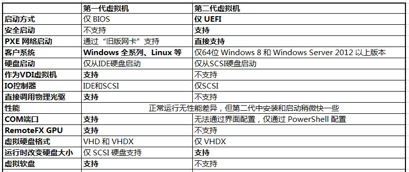 3、选择第一代虚拟机,至于和第二代的区别在哪,请看下图(PS:第二代貌似不支持我的电脑)