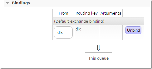 我们还需要建一个Queue2,这个队列用于消息在Queue1中过期后转发的目标队列。所以这个Queue2队列建好以后,需要绑定Queue1设置的死信路由:dlx。完成Queue2的绑定以后,环境就搭建完成了。