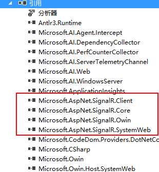 打开管理NuGet程序包,搜索SignalR,安装下面这些程序包