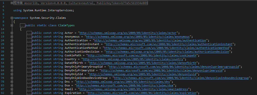 微软的人很贴心,给我们准备了一些默认的ClaimType呢?很多常用的都在里面呢,一起看看吧: