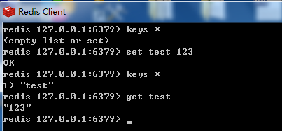 再回到redis文件夹下,找到redis-cli.exe文件,它就是Redis客户端程序。打开,输入: