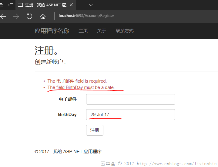 Required的错误消息和定义的一样,而DataType的消息却没有??既然DataType有自定义消息的公开属性为啥不起作用?如果有知道的欢迎留言。