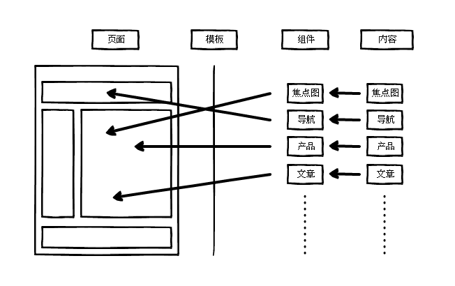 一个页面,由许多的组件构成,每个组件都可以包含不同的内容(Content),像文字,图片,视频等,内容由组件决定,呈现方式由组件的模板(View)决定。