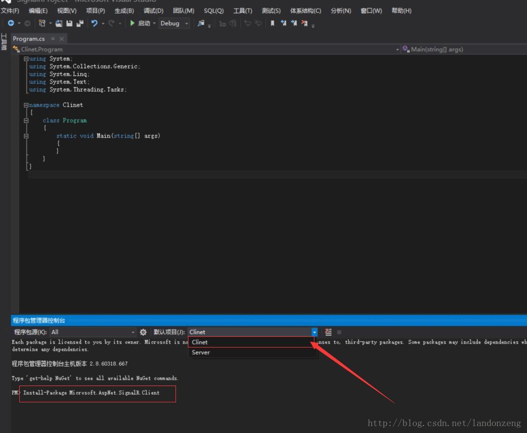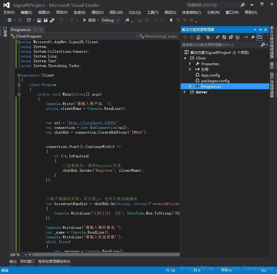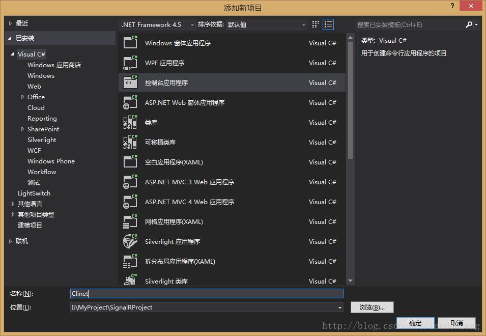 1、在SignalRProject解决方案下新建一个名为Clinet的控制台
