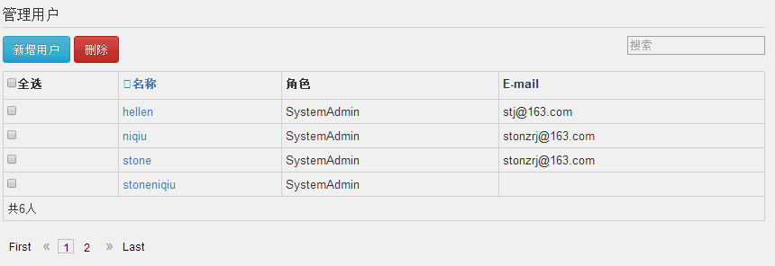 很多时候需要这样的功能,对表格进行分页、排序和检索。这个有很多实现的方式,有现成的表格控件、用前端的mvvm,用户控件。但很多时候看着很漂亮的东西你想进一步控制的时候却不那么如意。这里自己实现一次,功能不是高大全,但求一个清楚明白,也欢迎园友拍砖。前端是bootstrap3+jPaginate,后台基于membership。没什么难点。