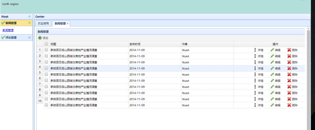 新闻管理主页的布局很简单就是一个表格,所以就先在body里面写了一表格