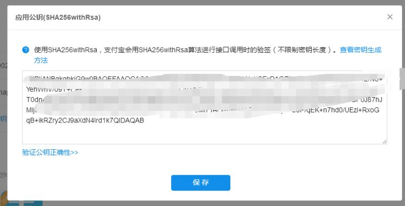 这个支付宝公钥和我们自己生成的公钥是不一样的,我们在配置SDK时用的公钥就是支付宝公钥