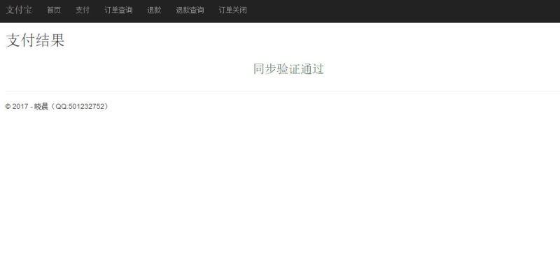 Console.WriteLine($"同步验证通过,订单号:{sArray["out_trade_no"]}");