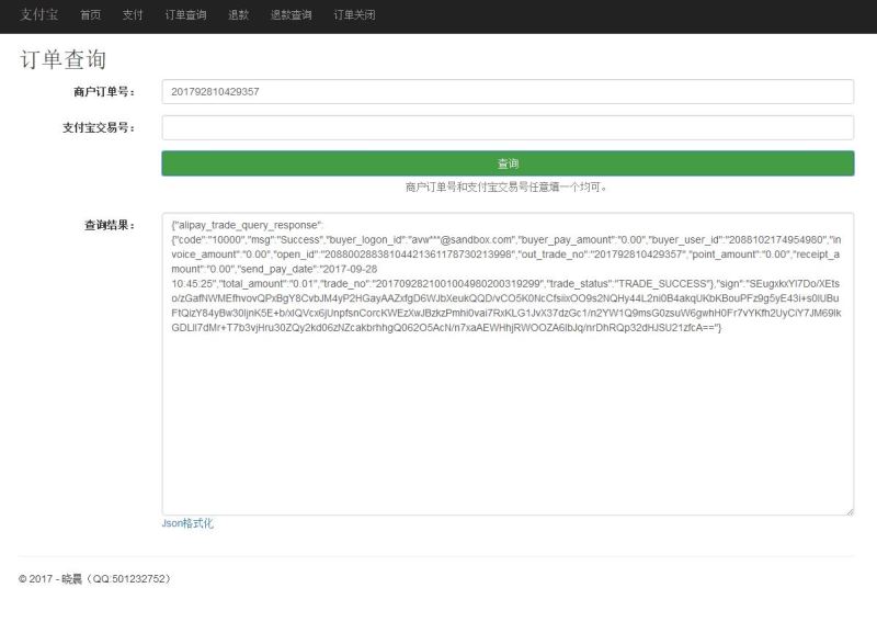 [HttpPost]public JsonResult Query(string tradeno, string alipayTradeNo){