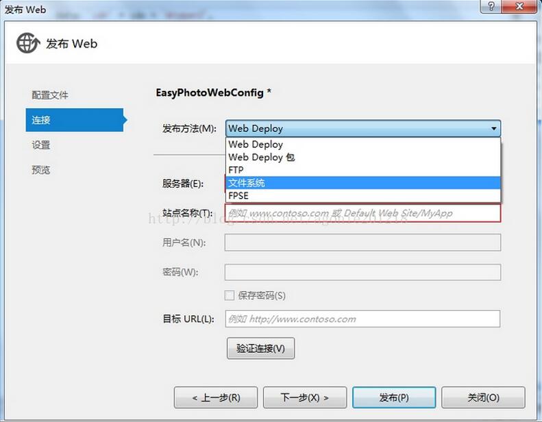 3、点击下一步:在发布方法中选“文件系统”,这样我们可以发布到自己指定的本机文件上。