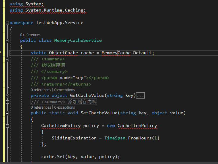 2.添加对Microsoft.Extensions.Caching.Memory命名空间的引用,它提供了.NET Core默认实现的MemoryCache类,以及全新的内存缓存API