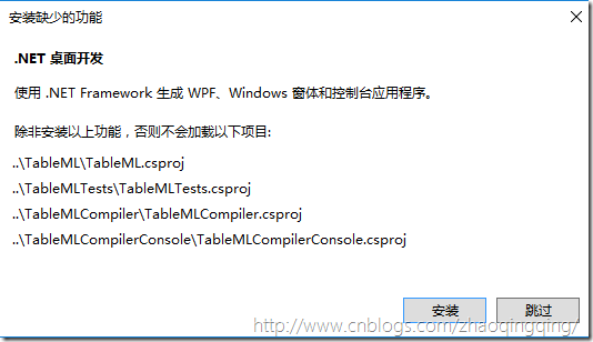 如果打开项目所需要的组件,当前VS并没有安装,VS会自动弹出让你安装的界面,如下所示: