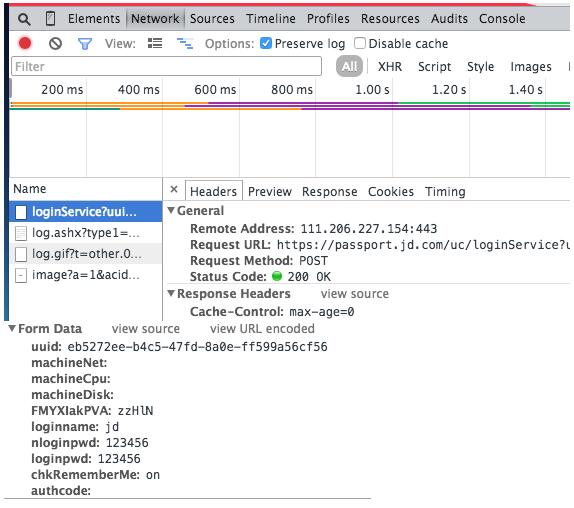 比如在登录京东时,会提交如下数据: